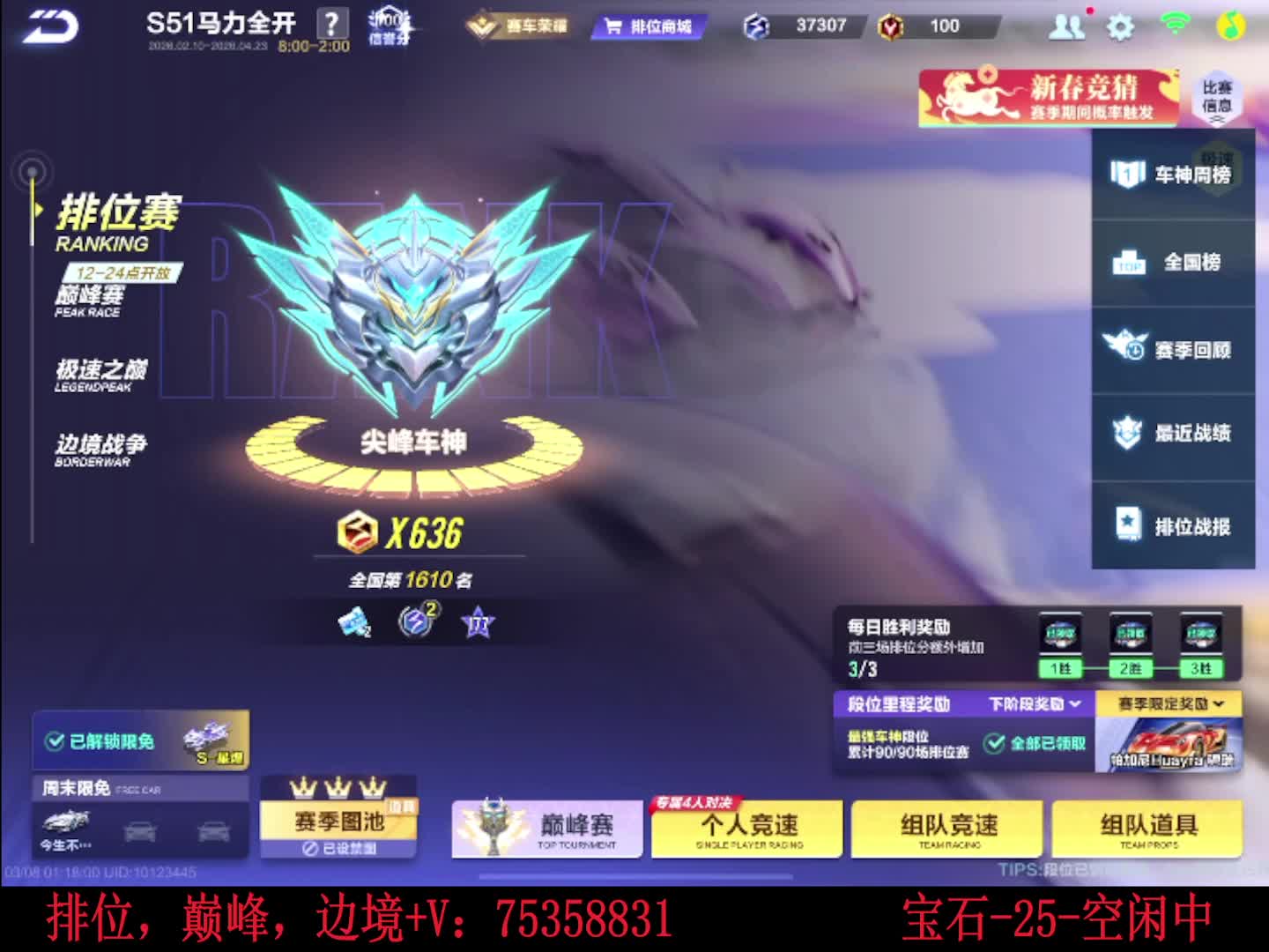 空闲中 排位巅峰包车