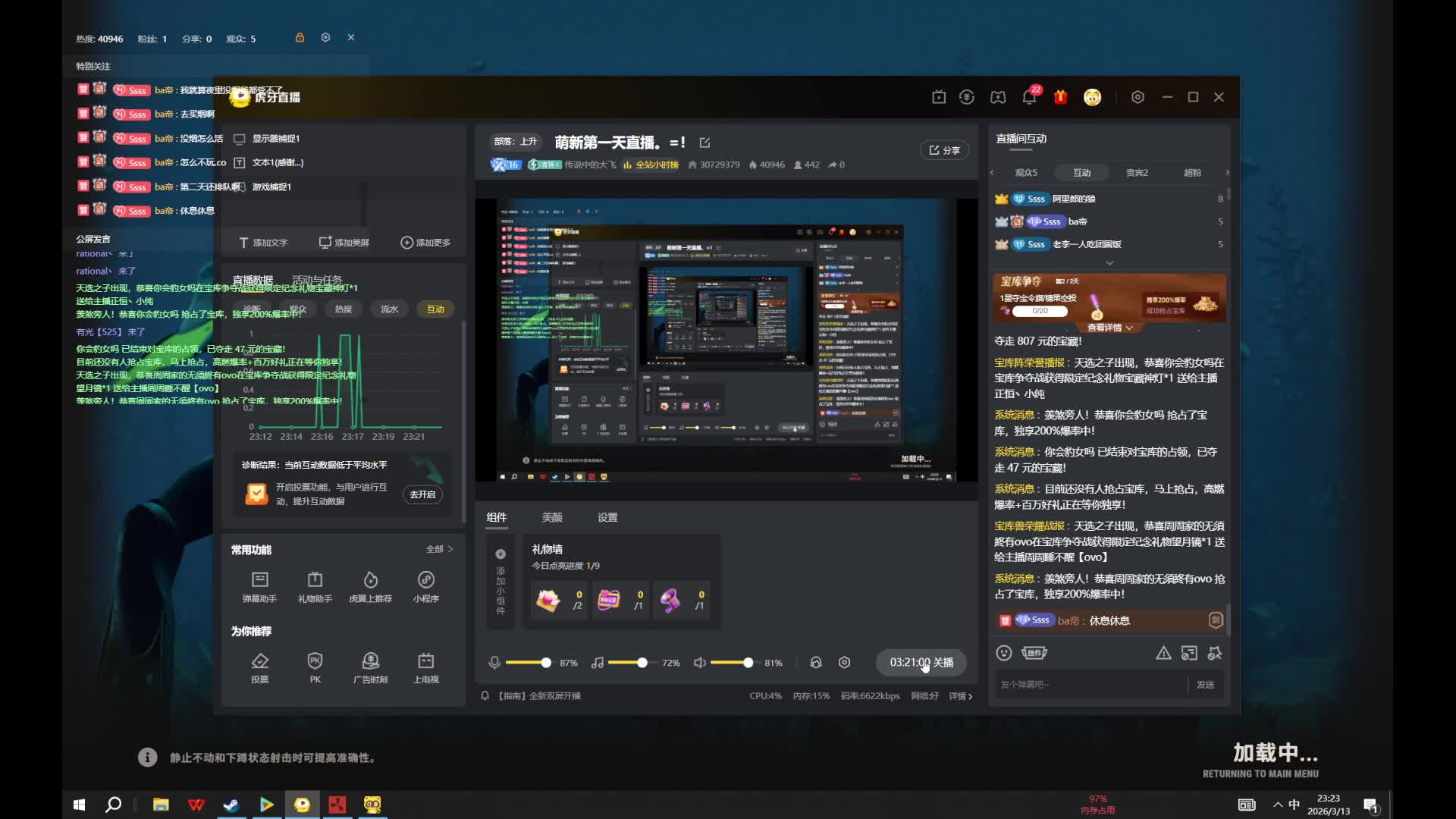 萌新第一天直播。=!