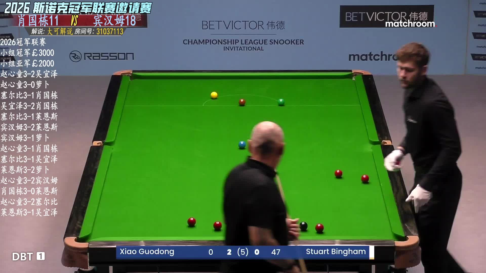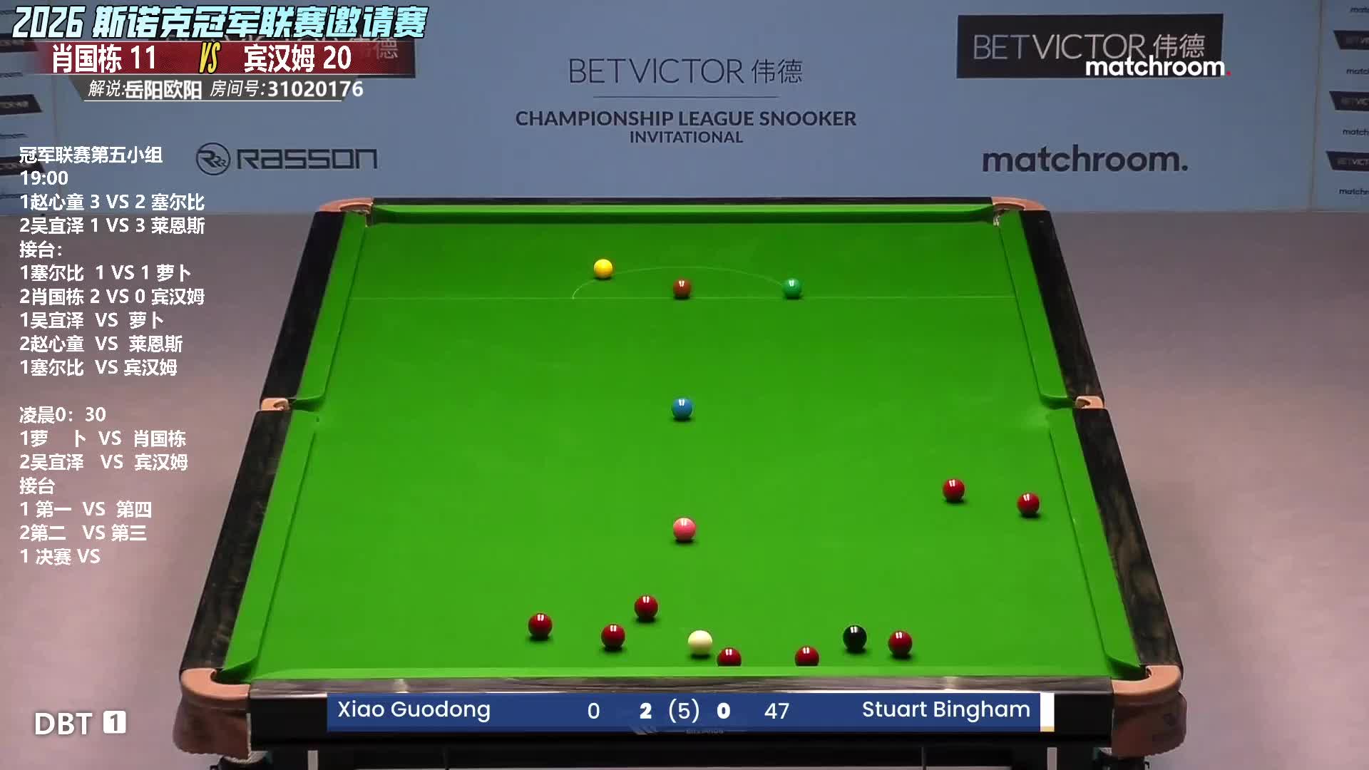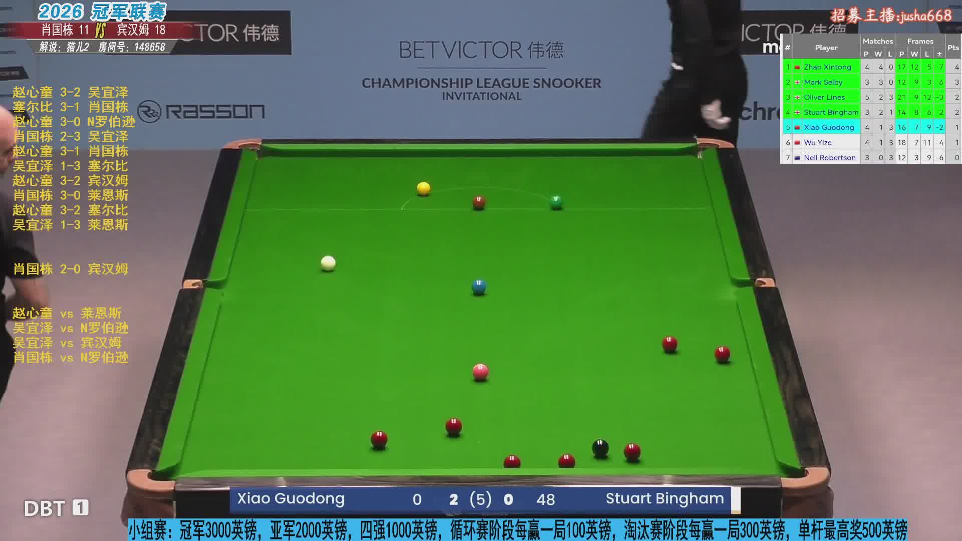 塞尔比vs赵心童 2026斯诺克冠军联赛